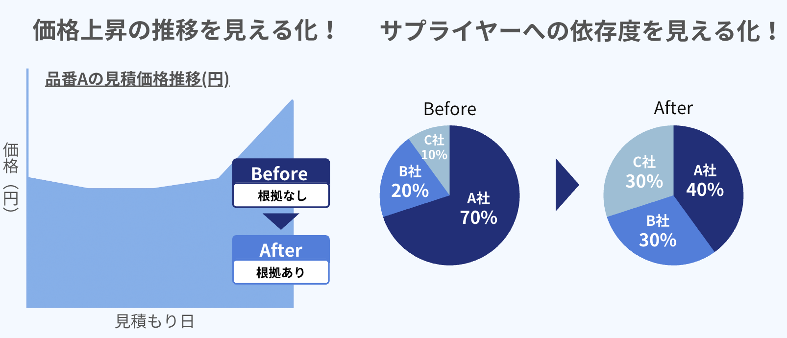 このように普段の調達業務をスマートAI調達で置き換えることにより、会社の未来へ向けて戦略的な施策を考えるためのデータを集めることができるというのが一番のメリットなのです。