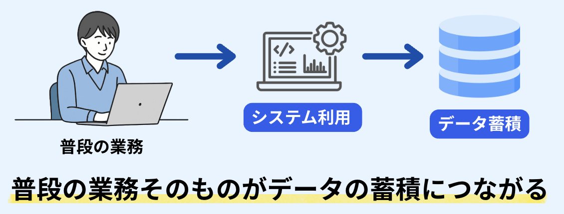 普段の業務を行うだけで、データが勝手に溜まっていくことに価値があります。